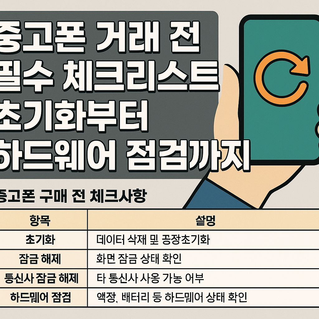 중고 스마트폰 거래가 활발한 요즘, 제대로 된 사전 점검과 초기화 절차 없이 거래하면 개인 정보 유출, 기기 불량, 통신사 잠금 등 여러 문제가 발생할 수 있습니다. 이번 글에서는 중고폰을 사고팔기 전에 반드시 확인해야 할 항목들을 구글 SEO에 최적화된 구조로 정리했습니다.
