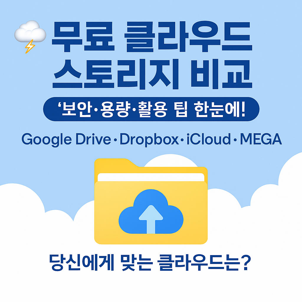 이번 글에서는 **대표 무료 클라우드 서비스 5종(Google Drive, Dropbox, OneDrive, iCloud, MEGA)**를 비교하여