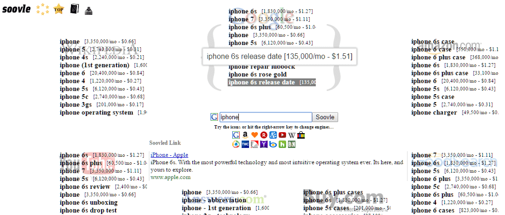 Soovle은 Google, YouTube, Amazon, Bing 등