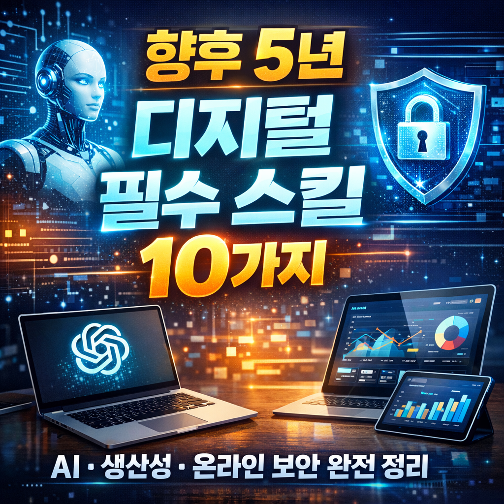 이 글에서는 2026~2030년을 대비해 반드시 익혀야 할 디지털 라이프 필수 스킬 10가지를 생산성·AI 대응·온라인 보안 관점에서 정리했습니다.